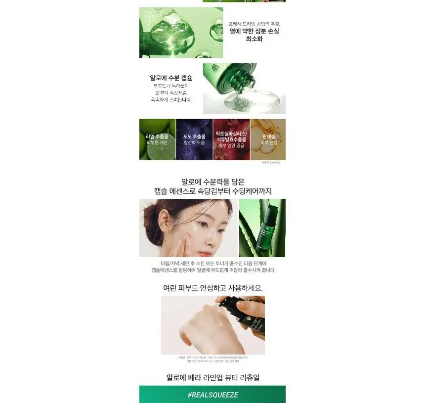 NATURE REPUBLIC Real Squeeze Aloe Vera Essence is a highly concentrated essence that delivers deep hydration and nourishment to the skin. Infused with aloe vera extract and fruit wine extract, this product makes the skin feel smooth, supple, and refreshed. Aloe vera extract is known for its multi-functional benefits, including moisturizing, hydrating, soothing, repairing, and regenerating tired or dull skin. It also provides essential vitamins and nutrients, helping to prevent dry, flaky skin, and relieving irritation. With its antibacterial properties, it aids in healing acne-prone skin. Ideal for enhancing skin hydration and elasticity, this essence is especially beneficial for normal, dry, or dehydrated skin types.